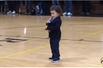 Prepare to be amazed as 2-year-old Trent Harris takes center stage at a New Jersey high school basketball game, delivering an adorable and surprisingly confident rendition of “The Star-Spangled Banner” that captivates the entire crowd!