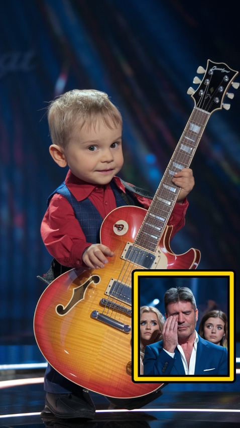 On stage stands a young boy, no more than twelve or thirteen, dressed sharply in a neatly pressed shirt and polished shoes. There’s an energy about him that instantly commands attention—not arrogance, but the quiet kind of confidence that comes from truly loving what you do. In his hands rests a guitar almost as big as he is, but he grips it with steadiness and ease, as though it has been his closest companion for years. The lights dim, the audience hushes, and in that moment of silence before the first note, all eyes are fixed on him.