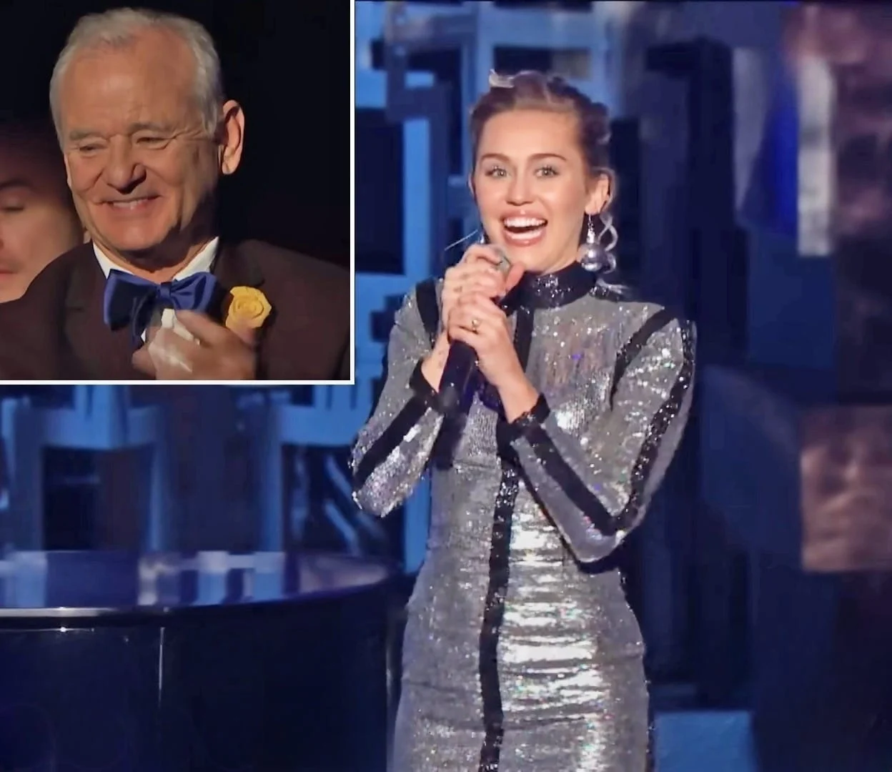 Miley’s rendition begins similarly to Sinatra’s 1969 hit: with a grand piano as a backdrop, the song’s waltz-like tempo adorned with the vocal runs of a pop icon, and witty asides inserted between lines. As Miley took the stage, Bill Murray, who was seated in the audience, watched her first lyric with tears in his eyes and gave her a standing ovation.